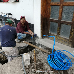 Con las medidas necesarias se siguen los trabajos de Sosapatex ya en un 80% avanzado, llevando una entubación de 400 mts lineales de tubería de concreto de 2.40 de diámetro interior, en donde cada tubo pesa 11 toneladas, además se llevan construidas 4 cajas de concreto y por parte del Sosapatex se han cambiado 20 tomas de agua desde la caja de banqueta hasta la red general con poliducto PE. Al. PE, y se han sacado del interior de la casa 8 medidores y se han colocado en la parte externa de la casa esto con la finalidad de que el lecturista se le facilite la toma la lectura del medidor. Asimismo se han cambiado 30 descargas sanitarias de las casas con tubo de pvc de 6" de diámetro desde la caja de banqueta a la red. Todo el material es suministrado por el Sosapatex estos trabajos son sin ningún costo para el usuario.